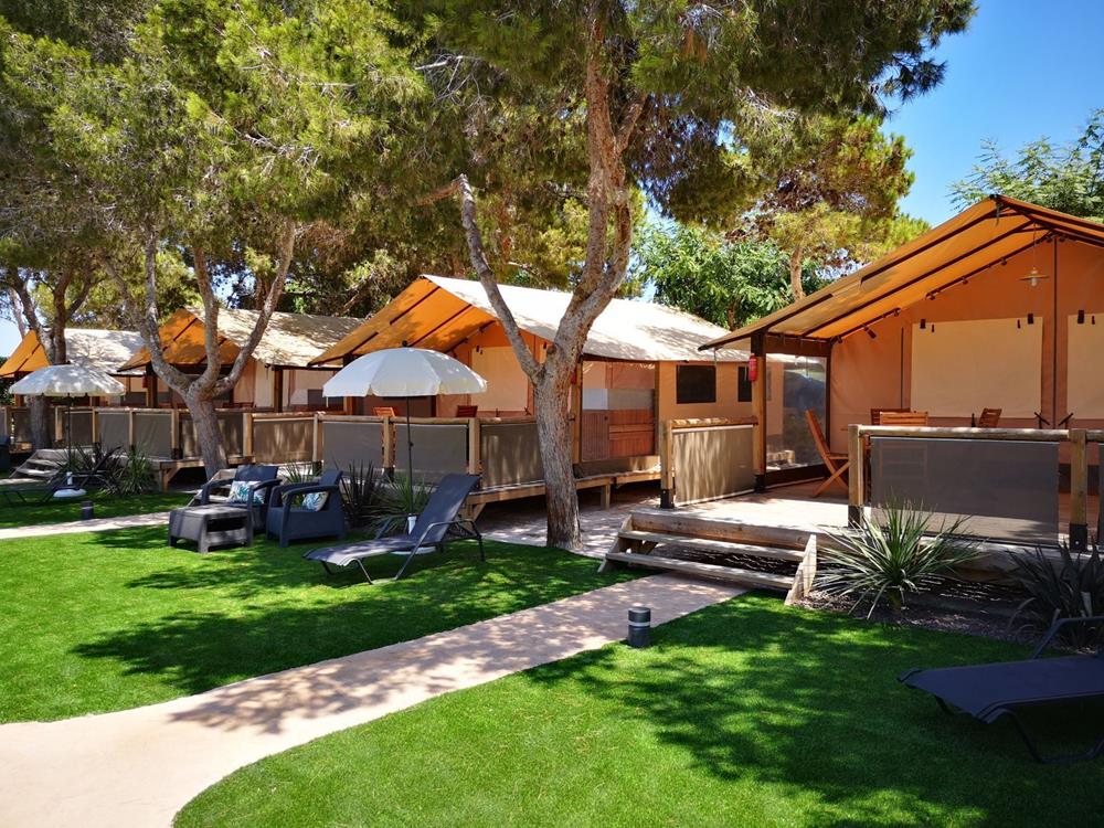Con más de 41.700 m2 el complejo cuenta con 3 tipos de alojamiento: encontrarás más de 120 cabañas totalmente equipadas, una zona de glamping y una zona de acampada con más de 80 parcelas preparadas para ofrecer el máximo confort.