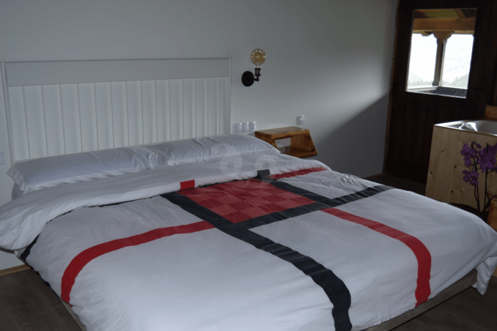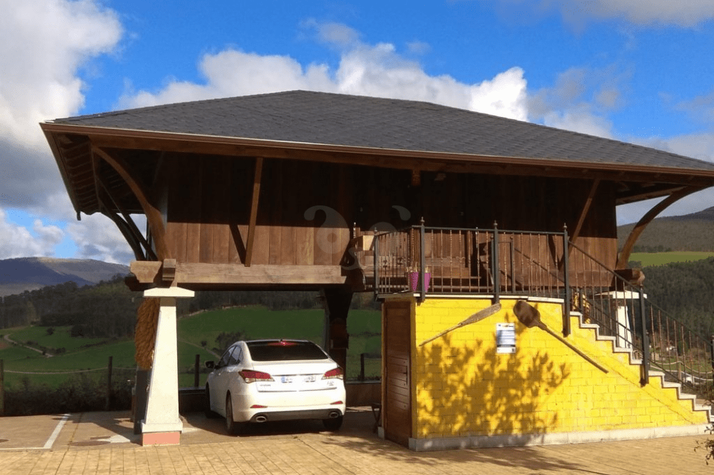Antiguo hórreo convertido en una estancia moderna y funcional. Se distribuye en dos habitaciones equipadas con cama de gran tamaño, bañera de hidromasaje, baño, además de algunos pequeños electrodomésticos como nevera, cafetera y hervidor. El corredor del hórreo está amueblado y desde ahí podrás contemplar el bello paisaje de alrededor.