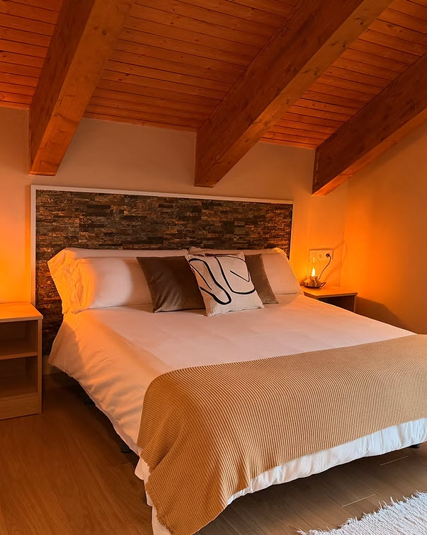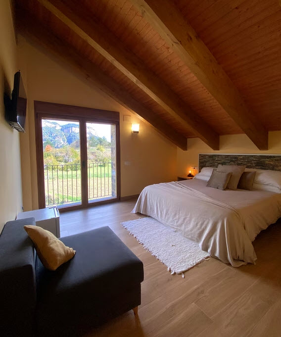Sus habitaciones destacan por su estilo moderno y acogedor, con grandes ventanales que permiten disfrutar de las vistas al valle y a las montañas del entorno de Ordesa.
