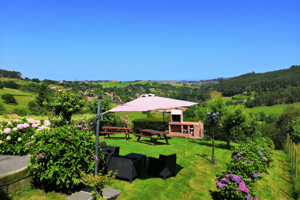 Los apartamentos están rodeados por un amplio jardín con mobiliario de terraza y barbacoa de obra, ideal para almorzar, cenar o desayunar al aire libre, además desde aquí podrás contemplar la magnífica panorámica del entorno.