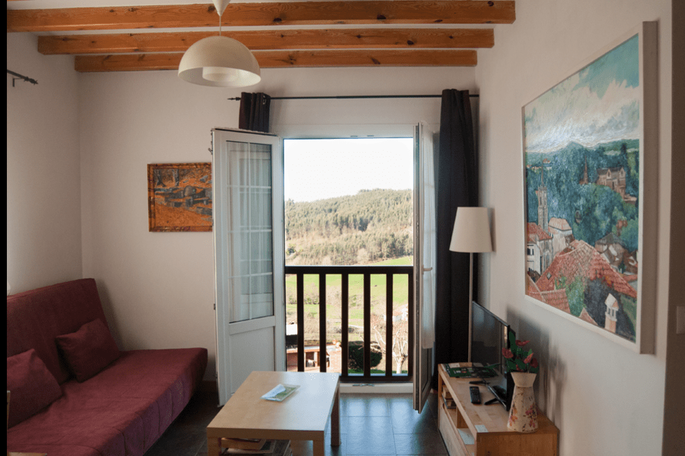 Apartamento Petirrojo, con espacio para 4 personas, dispone de increíbles vistas al Valle de Ruiseñada. Se distribuye en un dormitorio con cama de matrimonio de 150 cm, salón-comedor con sofá-cama de 135 cm para 2 personas, cocina equipada y de concepto abierto y un baño con bañera.