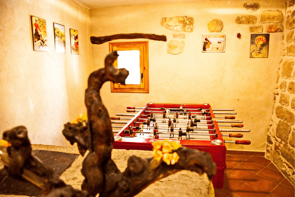 Cuenta con bodega donde poder realizar barbacoas y una zona de ocio con futbolín. También ofrece otras prestaciones como proyector, Wii, televisiones, conexión Wifi, cuna y parque para niños, sábanas y toallas, además de zona de aparcamiento.