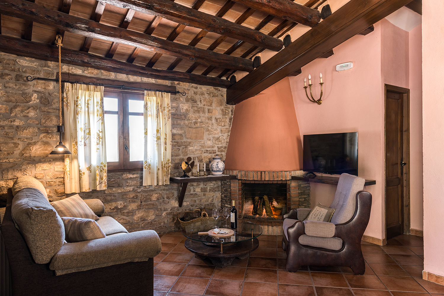 Cada casa guarda en su interior una esmerada decoración basada en el estilo rústico: muebles antiguos y restaurados, muros de piedra, vigas de madera, chimenea, en definitiva, un rincón para el descanso.