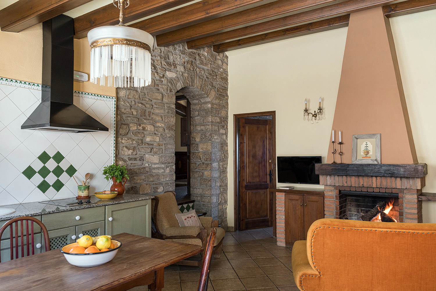 El Forn, con capacidad para 2 personas, es ideal para estancias románticas. Cuenta con un espacio diáfano donde se encuentra la cama de matrimonio, comedor, cocina, chimenea, baño con ducha de hidromasaje, jardín privado con barbacoa y acceso directo a la piscina.