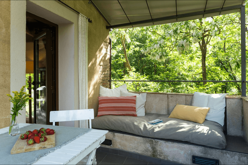 La Volta se distribuye de dos habitaciones dobles, una cómoda sala de estar con chimenea de concepto abierto hacia la zona de comedor y la cocina, esta última equipada con menaje y utensilios para preparar deliciosos platos caseros. La Volta cuenta con una terraza exterior amueblada. El apartamento se convierte en la opción perfecta para estancias en familia.