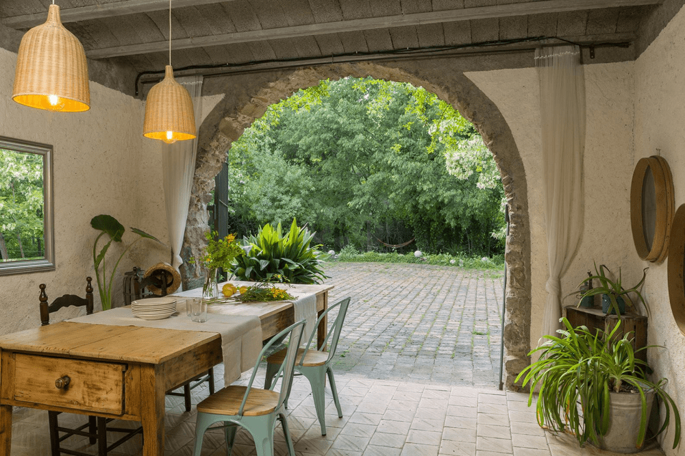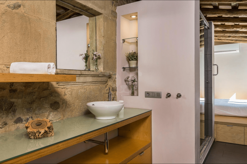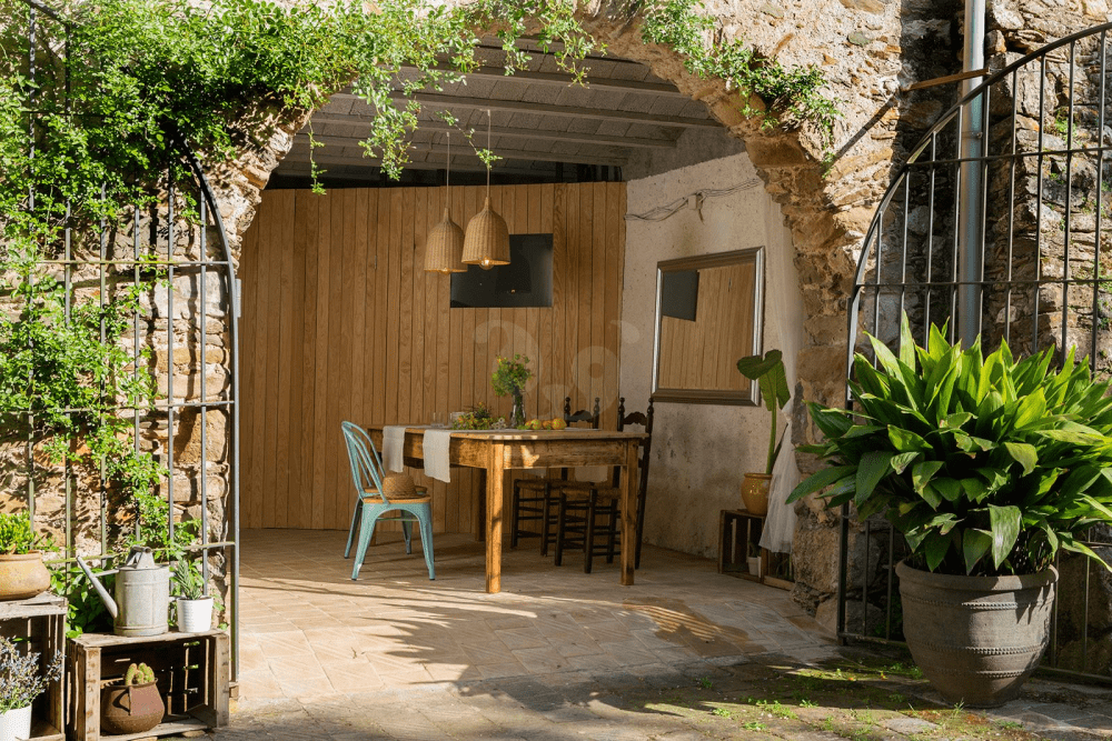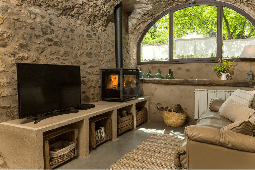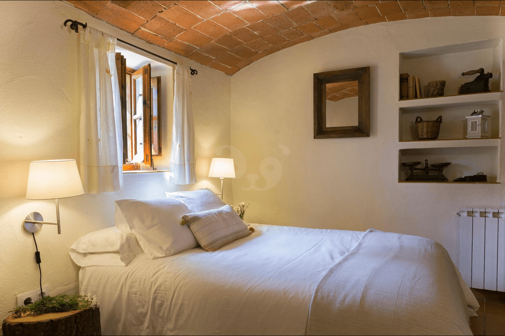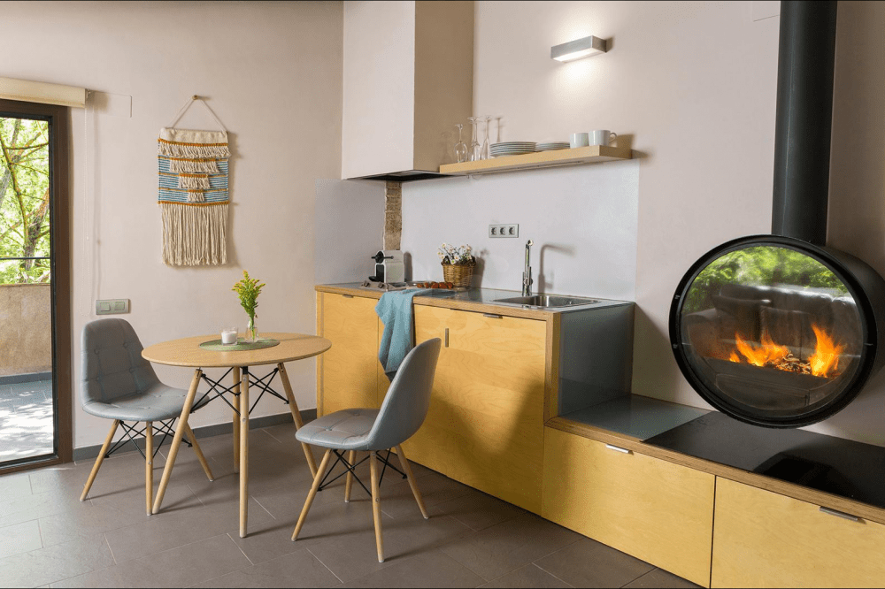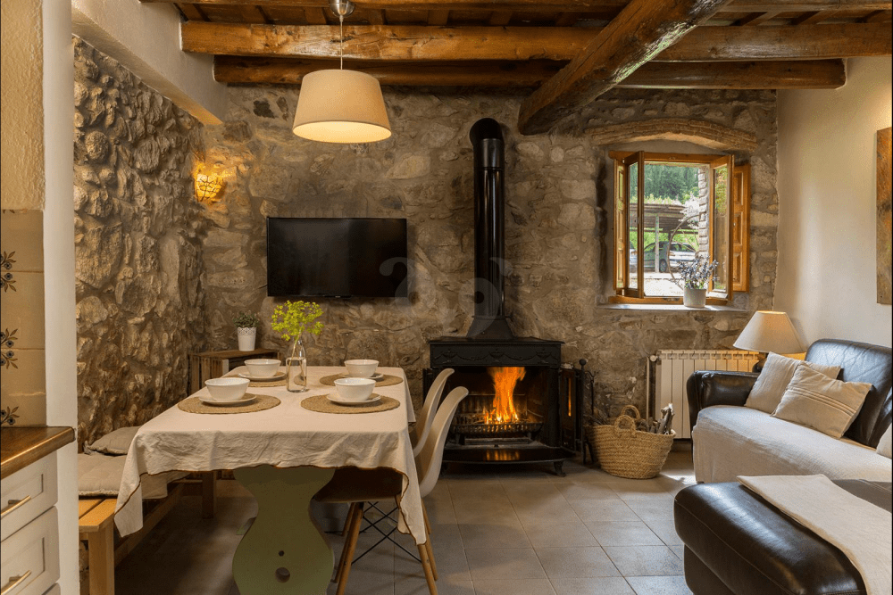 Por último, se encuentra La Volta, el último apartamento reformado de Can Bonet. En su interior podrás disfrutar de dos habitaciones dobles, una cómoda sala de estar con chimenea, un espacio de concepto abierto hacia la zona de comedor y la cocina, esta última equipada con menaje y utensilios para preparar deliciosos platos caseros. La Volta cuenta con una terraza exterior amueblada. El apartamento se convierte en la opción perfecta para estancias en familia.