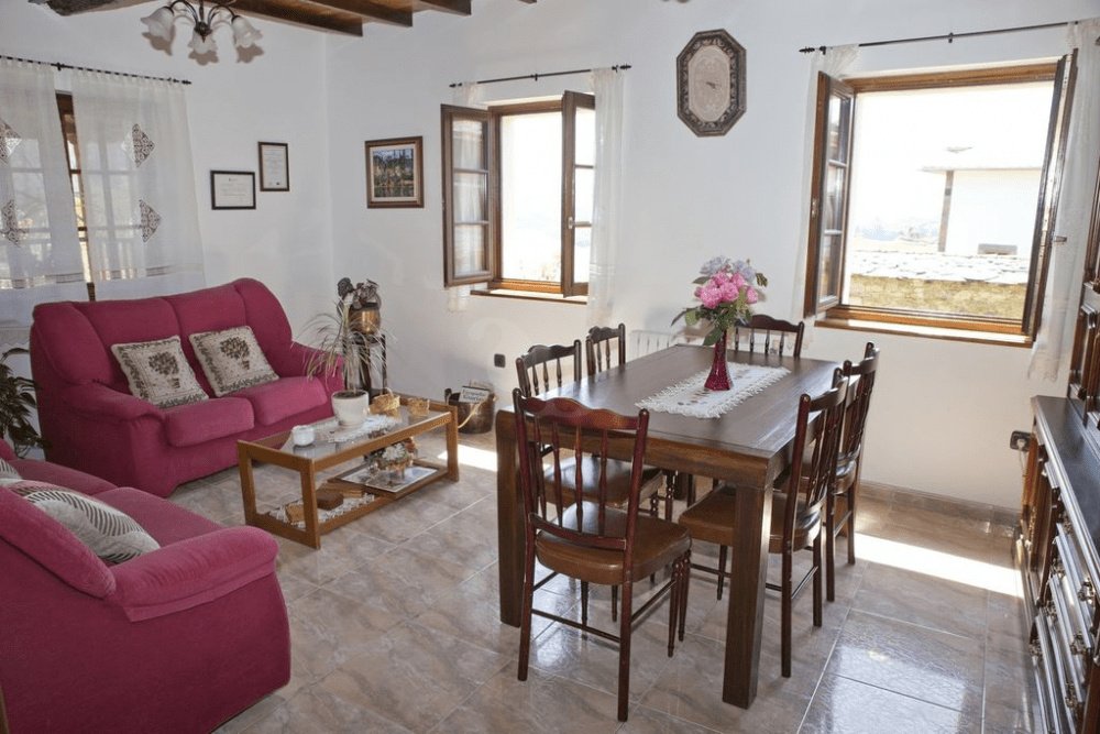 Apartamento Abad II se ubica en la planta baja y consta de un dormitorio con baño privado, una habitación doble, una habitación sencilla y un baño completo. El salón-cocina con chimenea está provisto de electrodomésticos y todo el menaje y utensilios necesarios para la estancia al igual que Abad I. Este apartamento alberga capacidad para 5/6 personas y está adaptado a personas con movilidad reducida.