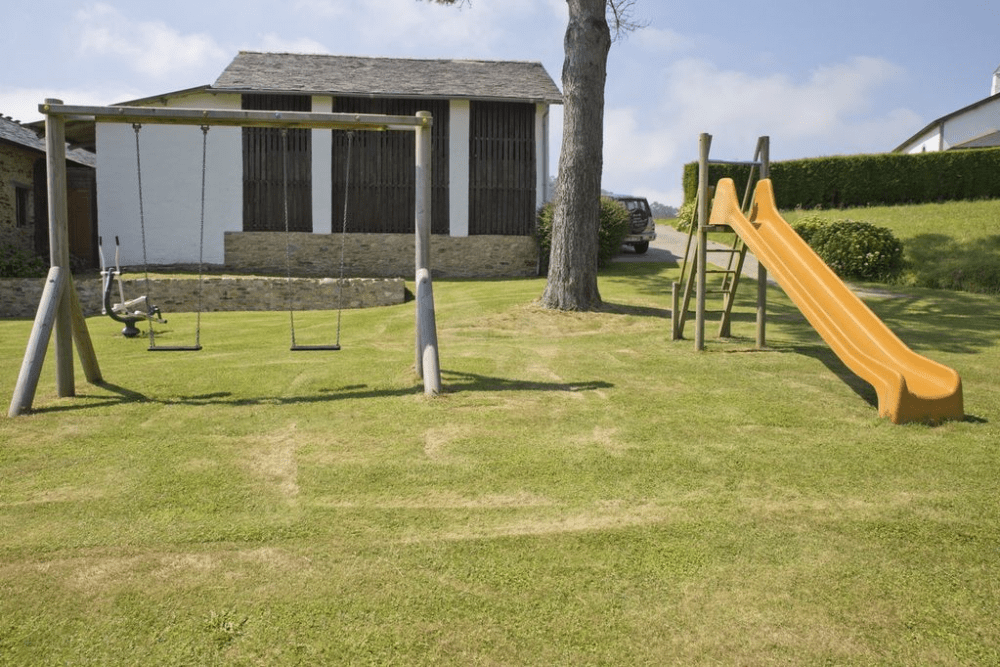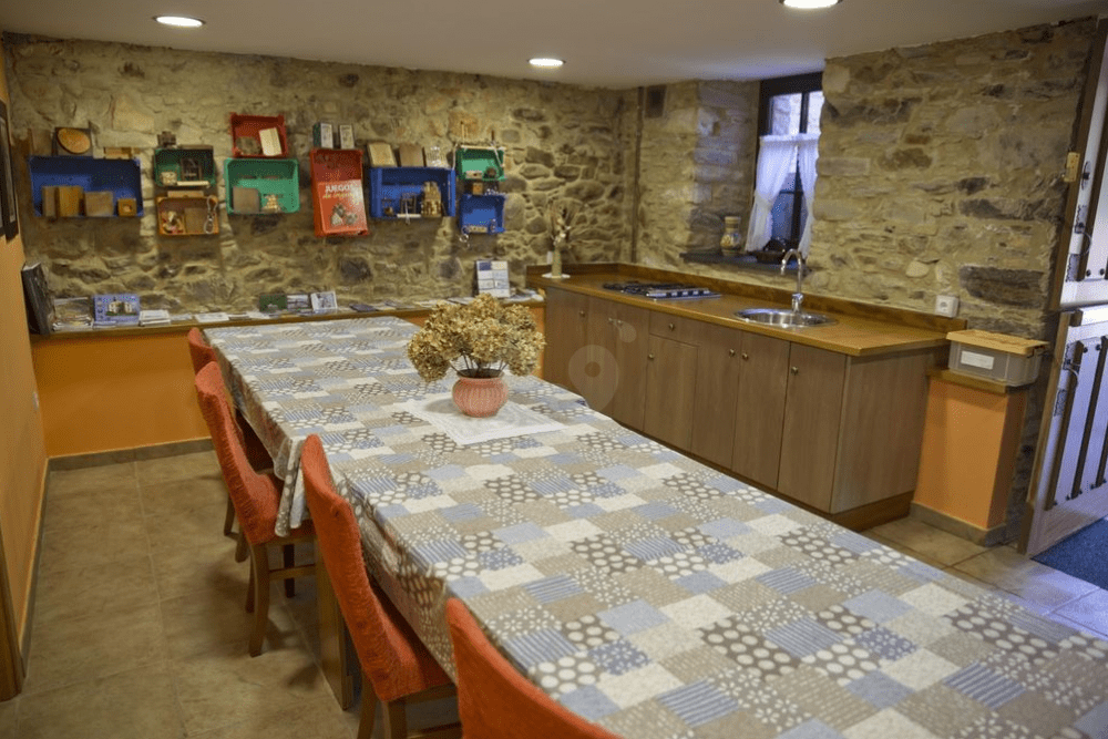En el exterior de los alojamientos tendrás a tu disposición amplias zonas verdes de césped natural, zona de aparcamiento, una zona de uso común con parrilla y cocina-comedor para organizar comidas, una huerta con árboles frutales, un área infantil, una biblioteca y un pequeño museo que hace homenaje a la historia del lugar.