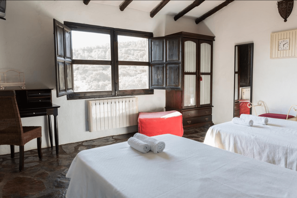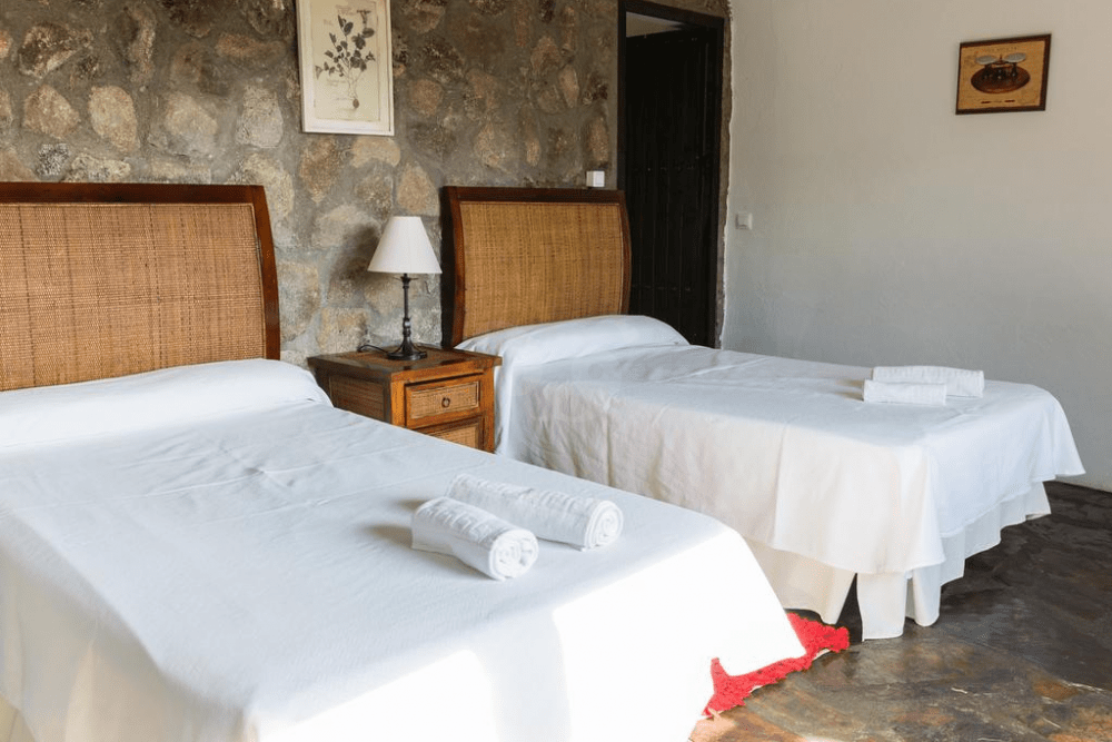 Este alojamiento independiente tiene capacidad para 6 personas, siendo perfecto para estancias en familia o con amigos. Se distribuye en dos plantas, decoradas con esmero para ofrecer un ambiente cálido y acogedor. En la primera planta se encuentran el vestíbulo, una cocina completamente equipada con electrodomésticos, utensilios y vajilla, además de una habitación con baño. En la planta superior hay dos habitaciones con baño privado, garantizando privacidad e intimidad.