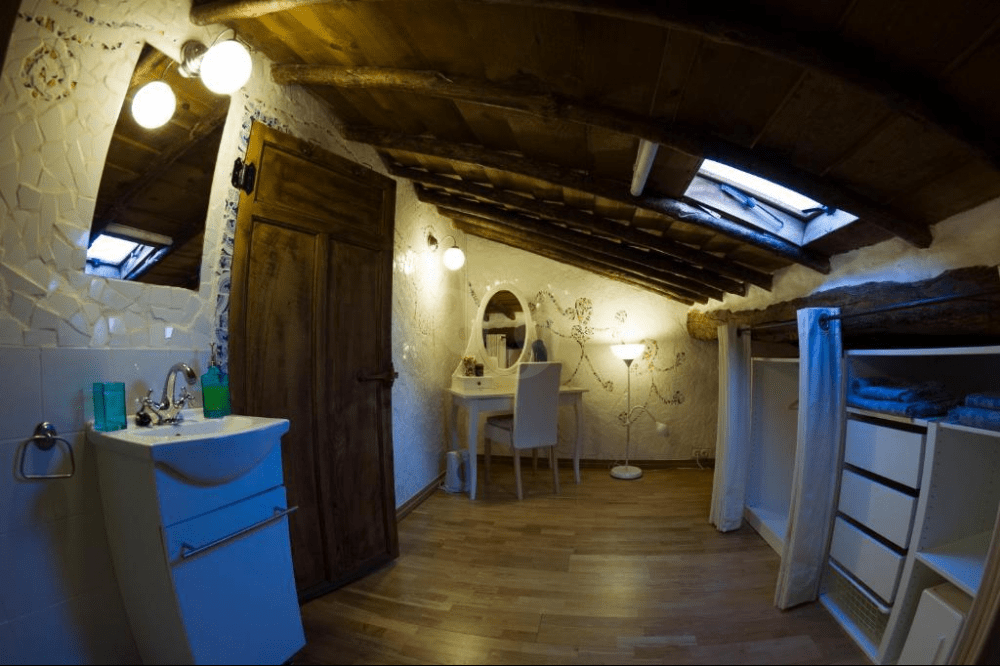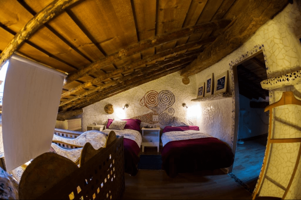 Con capacidad para 4 personas con capa supletoria, cuenta con una habitación con dos camas de matrimonio, sofá-cama, baño con jacuzzi, salón con chimenea y horno de leña, cocina completamente equipada, jardín privado con su barbacoa y huerto ecológico en la finca.