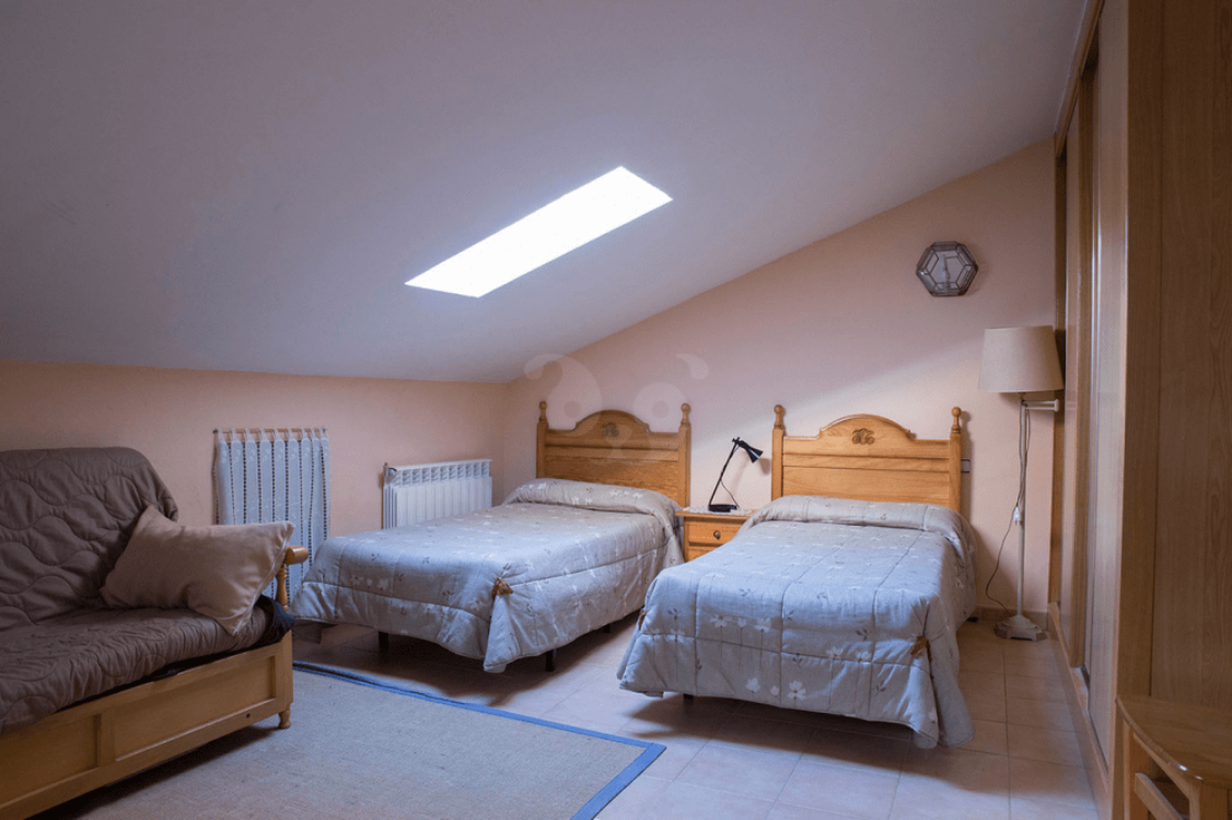 En cuanto a las habitaciones, en la primera planta se sitúa la habitación de matrimonio, con terraza y equipada con amplios armarios. En esta planta también hay tres habitaciones dobles. En la segunda planta hay dos dormitorios con cuatro camas en cada uno, ideales para crear diversos ambientes: familiares, amigos, etc.