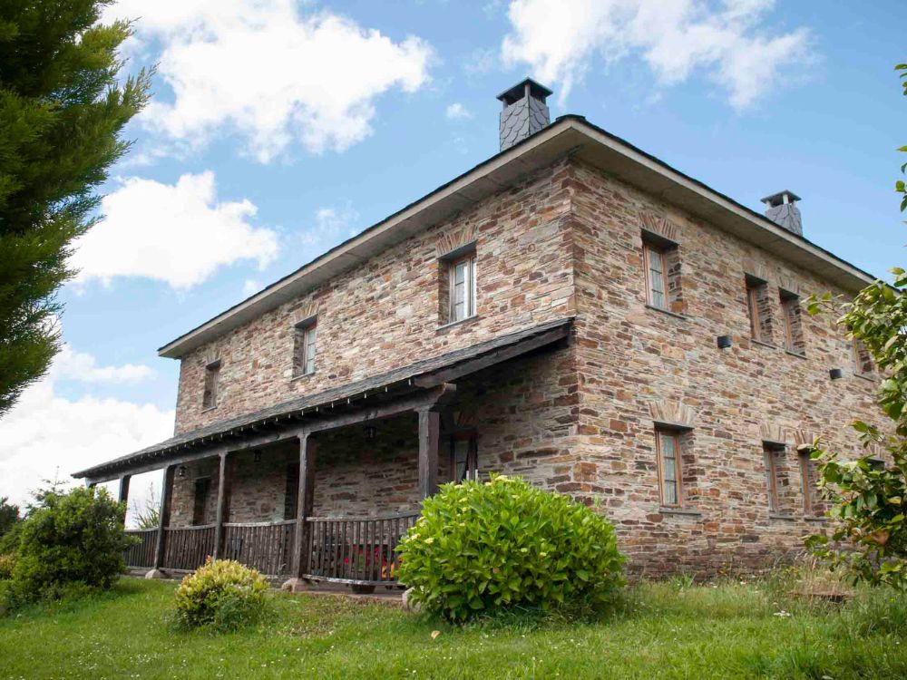 Casoa La Braña es una bonita casa típica gallega, construida con materiales autóctonos como pizarra, madera y piedra, se accede a ella mediante un camino empedrado y rodeado de un amplio jardín.