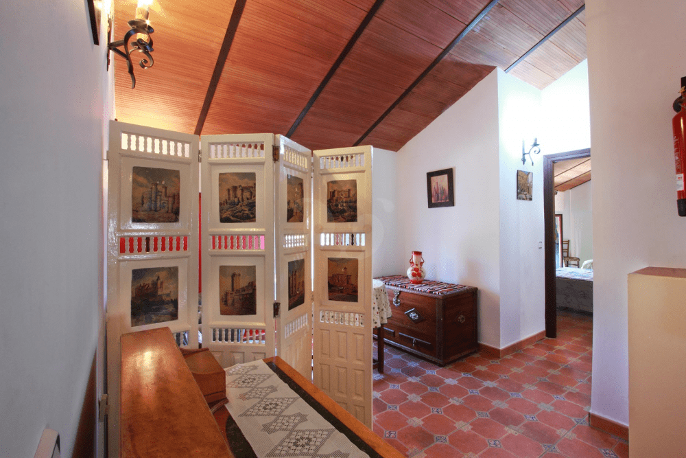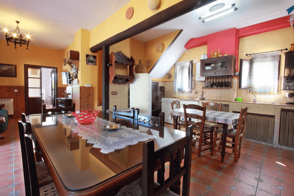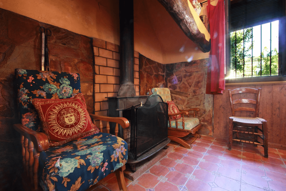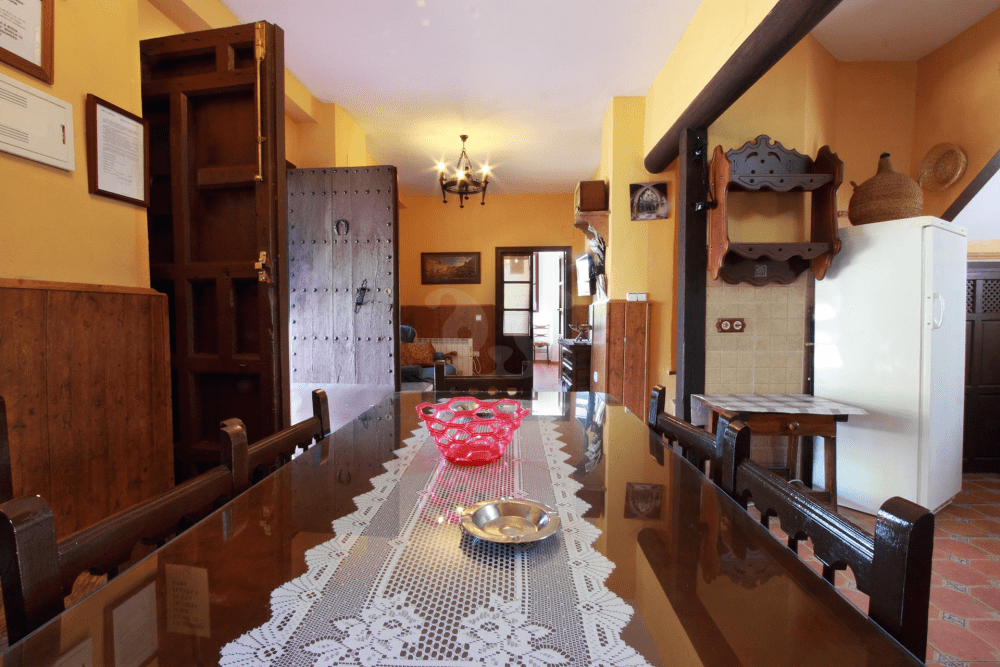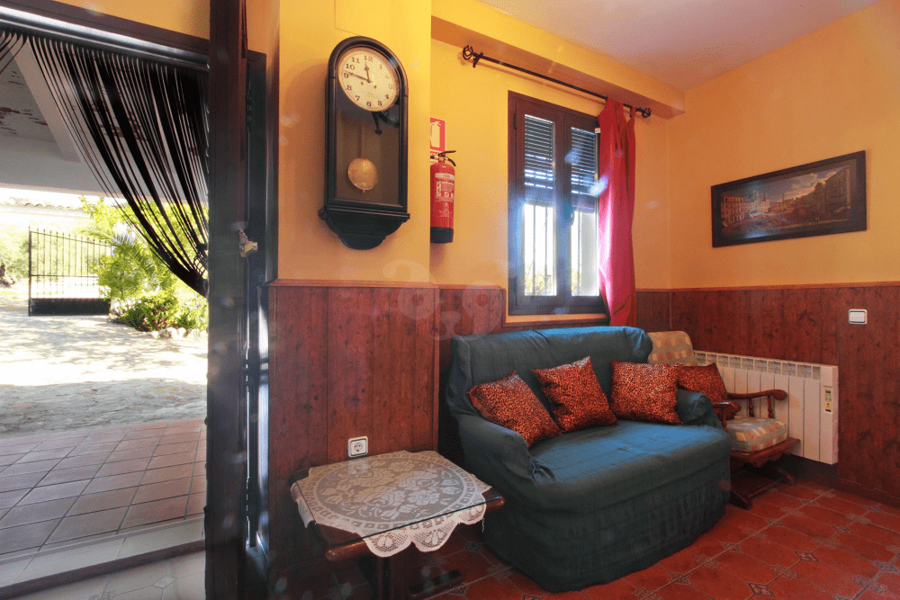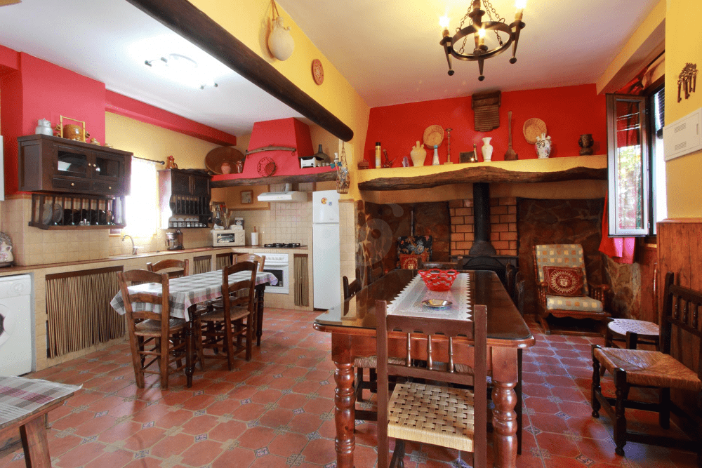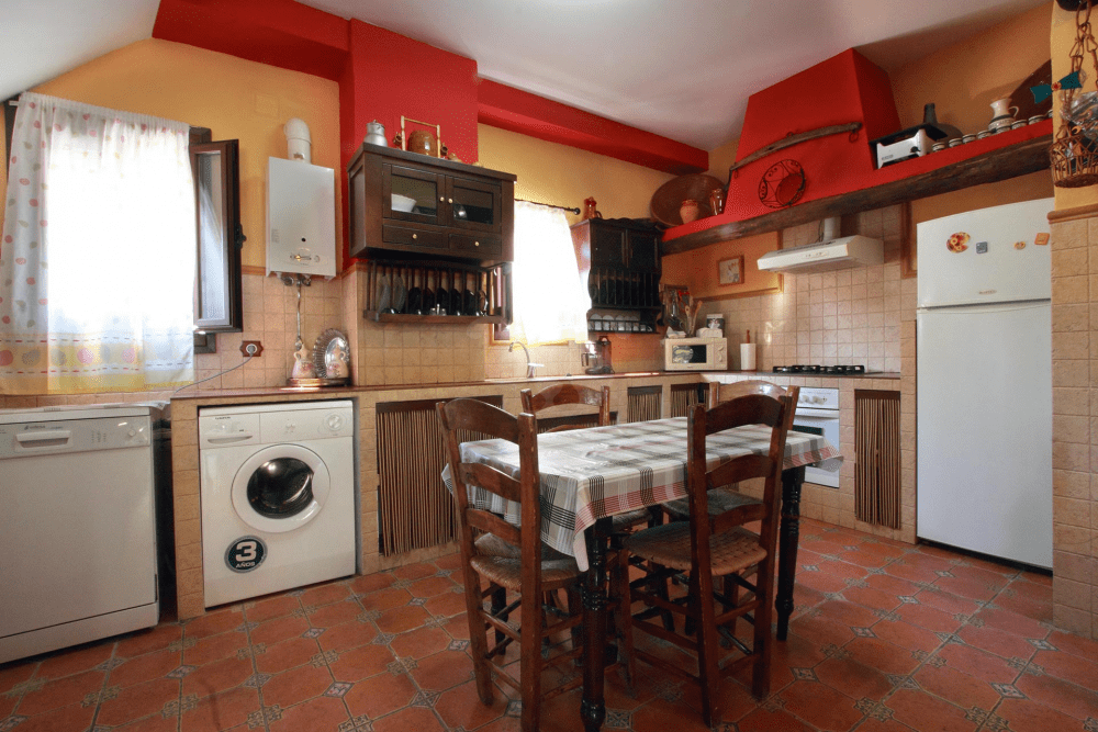 La cocina está completamente equipada y abierta hacia el comedor. El salón tiene un espacio para ver televisión y junto a la chimenea, es ideal para leer o relajarse. En el exterior, el cortijo cuenta con una barbacoa de obra, zona de terraza y una piscina vallada para la seguridad de los huéspedes, además de una zona recreativa para niños con columpios y tobogán.