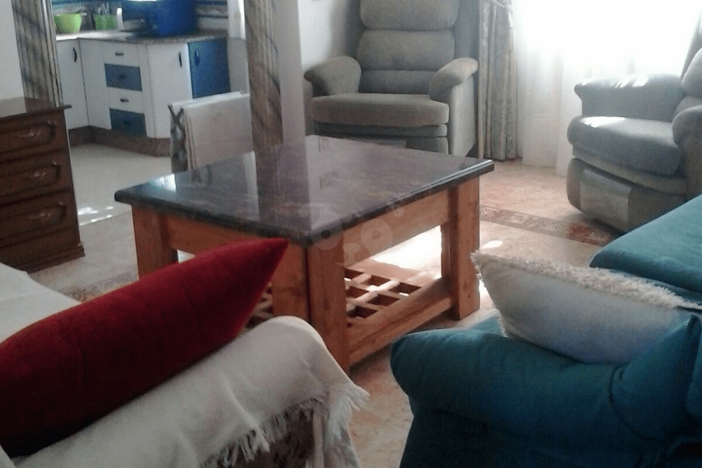 El salón está dotado de cómodos sofás, televisión de plasma y acceso a la cocina a través de un arco sostenido por dos columnas.