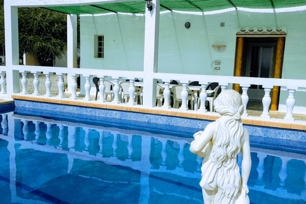 En el exterior de Los Carriles disfrutarás de varios espacios, porche cubierto, zona de chill out, lugar para hacer barbacoas con mobiliario exterior y lo mejor de todo, una espectacular piscina con tumbonas para tomar el sol.