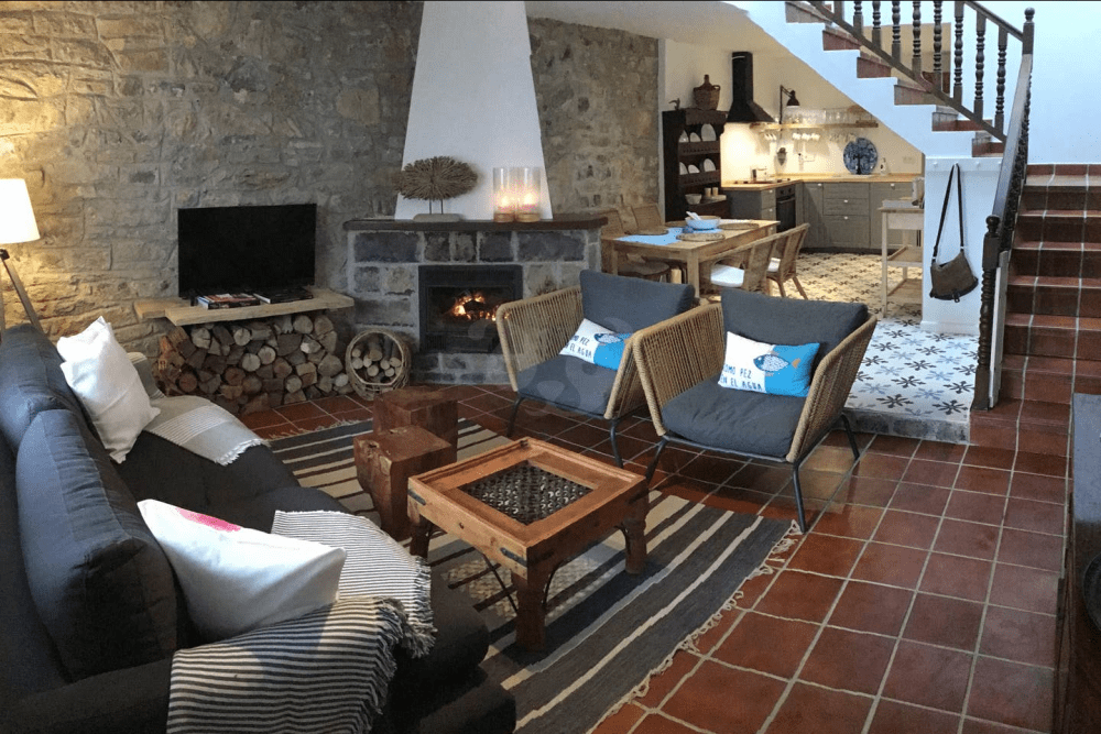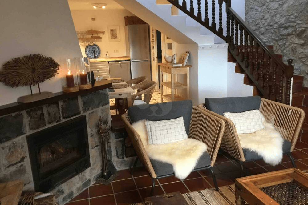 La estancia está pensada para albergar entre 2 hasta 4 personas. En su interior encontrarás una planta baja compuesta por el salón con chimenea, el comedor y la cocina, totalmente equipada con electrodomésticos y menaje de hogar. En esta planta existe un aseo y una zona de lavandería.