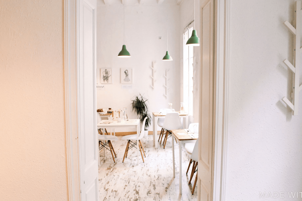 El local se sitúa en una antigua casa modernista con una cuidada decoración en blanco nórdico, lo que lo convierte en un entorno ideal para disfrutar de una comida consciente, deliciosa y en compañía de tu mascota.
