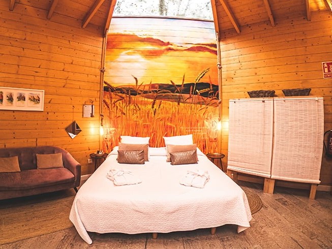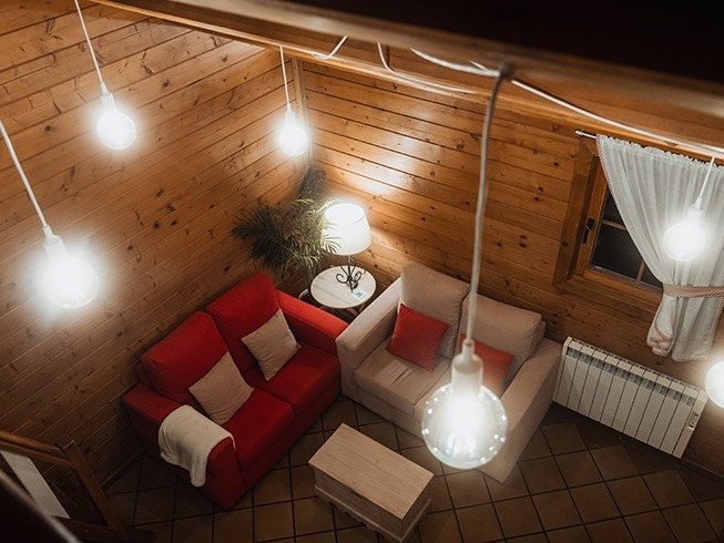 - Suite: Capacidad para 4 personas, se trata de una preciosa habitación abuhardillada, que cuenta con salón, pequeño vestidor, un gran cuarto de baño y una terraza cubierta con unas magníficas vistas panorámicas.