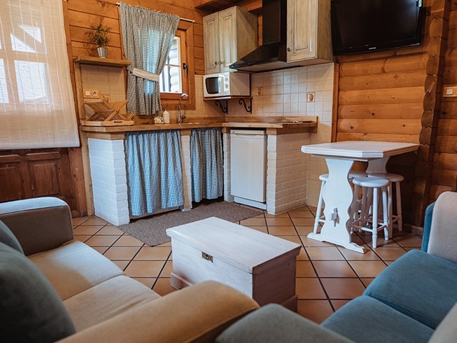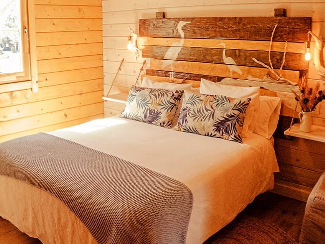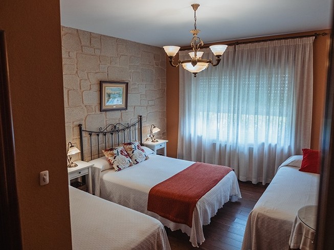 Capacidad para 3 personas, cuenta con una cama tipo King Size (1,80 x 2,00 m.) y un confortable cuarto de baño con una amplia cabina de ducha con sistema de cromoterapia.