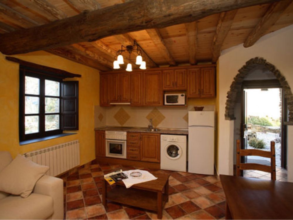 Apartamento Timón: Situada en la planta primera. En su rehabilitación se han respetado los elementos estructurales originales. El dormitorio tiene una cama de 150 cm , y el salón tiene cocina con vitrocerámica, horno, microondas , lavadora y frigorífico. Asimismo, el salón tiene un sofá-cama de 135 cm y admite una o dos camas plegables de 90 cm.