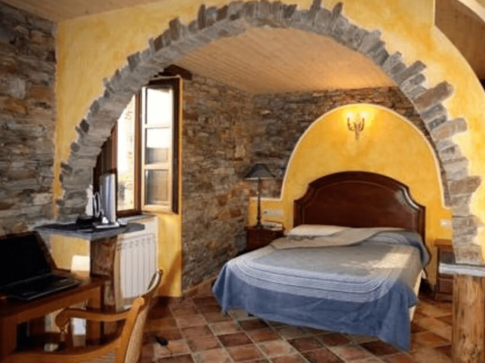 Habitación Amarilla: Situada en la planta primera tiene una cama de 135 cm admite una cama supletoria. Desde las ventanas del dormitorio se divisa la montaña y Galicia y desde el baño, el mar. El baño cuenta con bañera de hidromasaje.