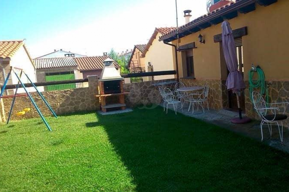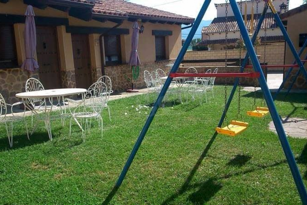 El jardín cuenta con un área recreativa con columpios para que los más pequeños de la casa se diviertan sin límites durante la estancia.