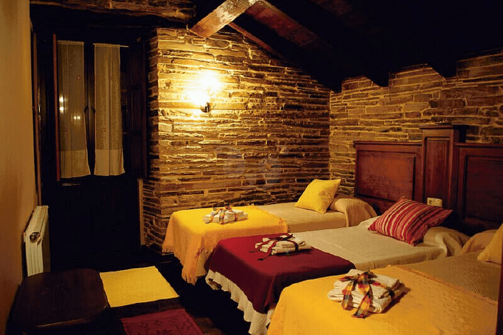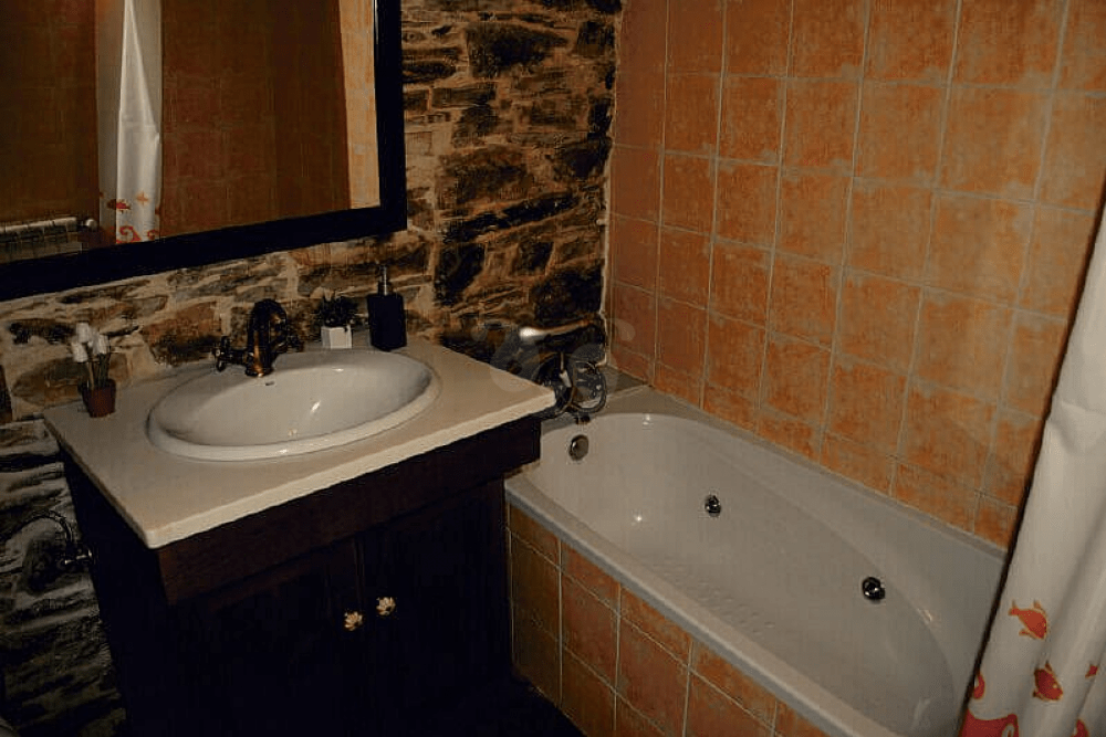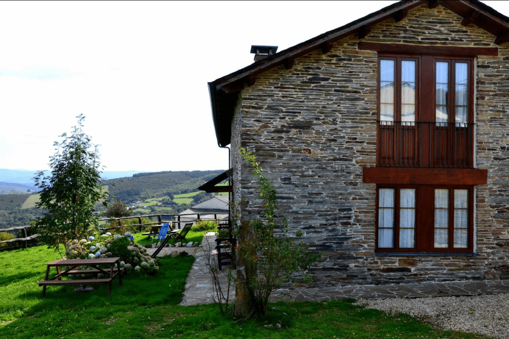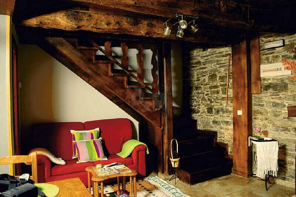 El Teixo, también para seis personas, se distribuye en cocina-salón, habitación con cama de matrimonio y baño con columna de hidromasaje en la planta baja, y dos habitaciones dobles más un baño con bañera de hidromasaje en la planta alta. El apartamento cuenta con acceso a zonas ajardinadas y barbacoa.