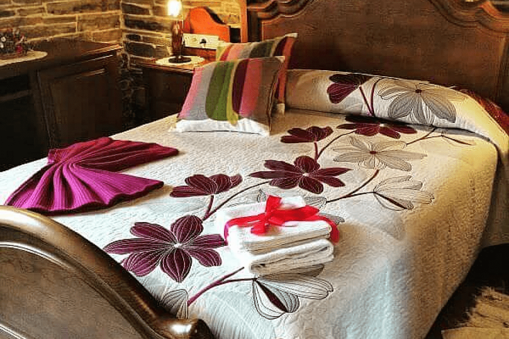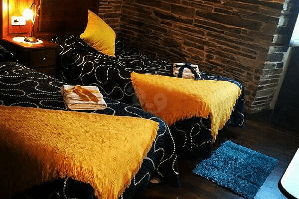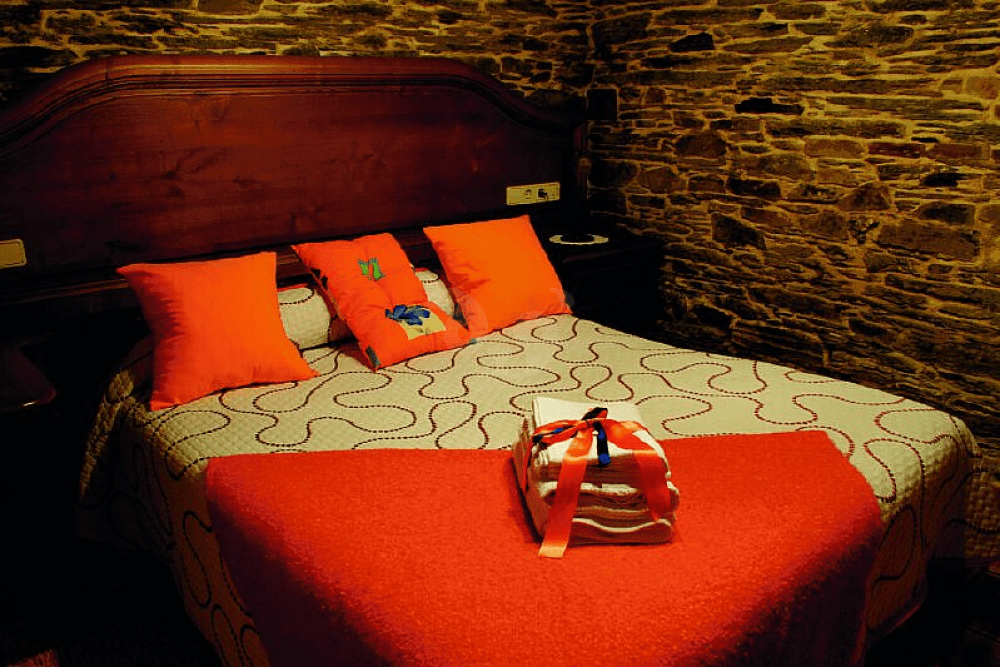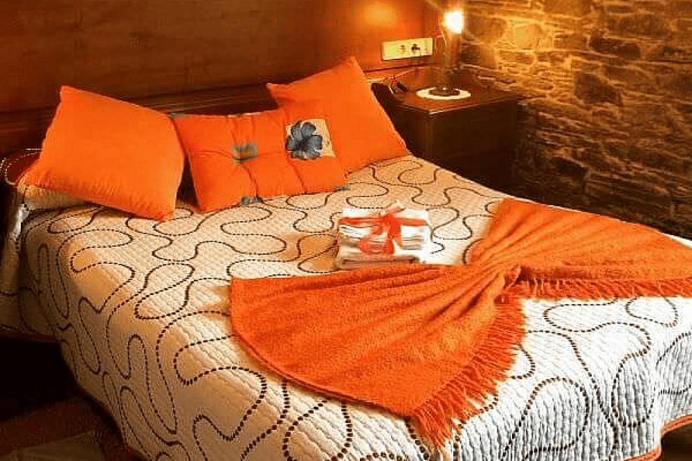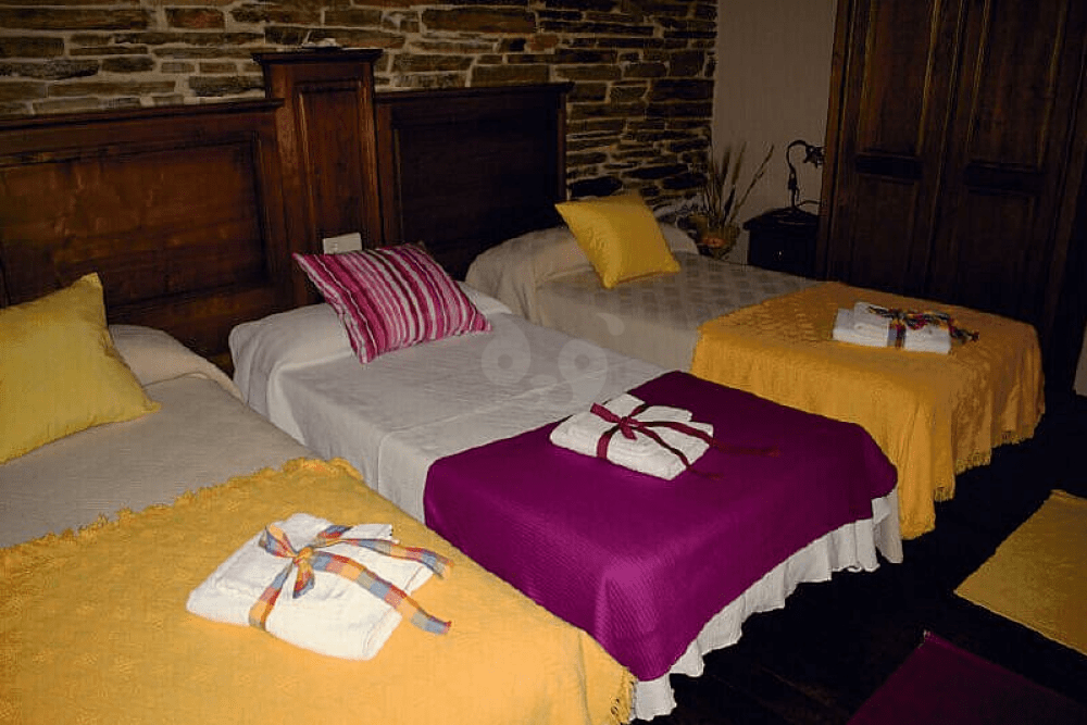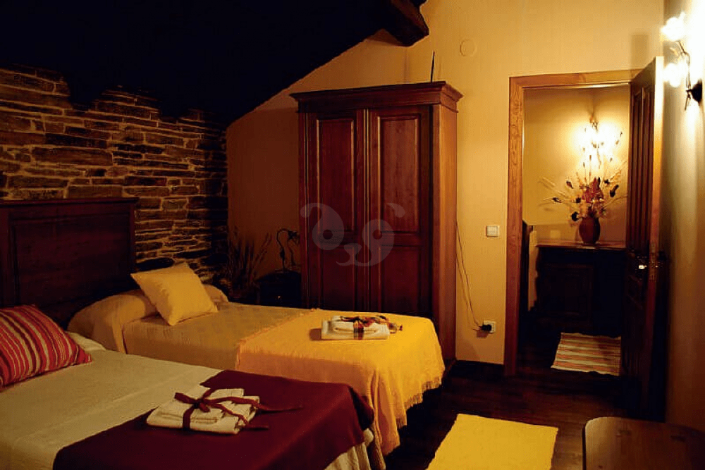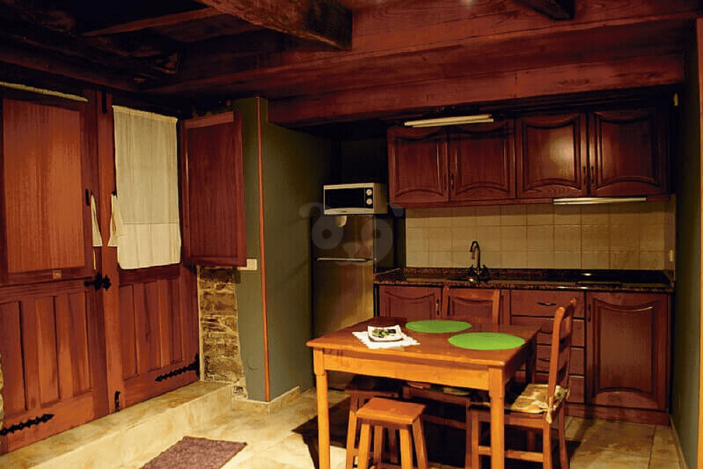 El Teixo, un apartamento para 6 personas, totalmente equipado. La planta baja se distribuye en una cocina-salón con chimenea, una habitación con cama de matrimonio y un baño con columna de hidromasaje. En la parte superior del alojamiento se encuentran dos habitaciones dobles y el baño con bañera de hidromasaje. En el exterior cuenta con acceso a espacios ajardinados y zona de barbacoa.