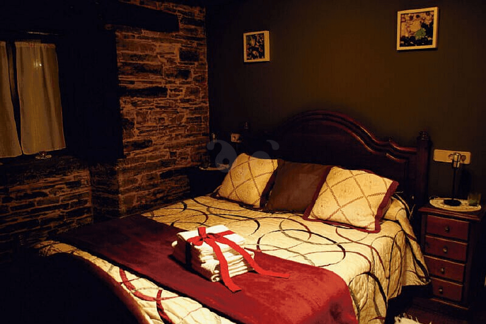 La Corrada es ideal para estancias en pareja ya que tiene espacio para 2 personas. En la parte inferior se ubica la cocina-salón con chimenea y un aseo. En la planta superior está la habitación, con cama de matrimonio, un baño y bañera hidromasaje. Acceso al jardín y zona de barbacoa.