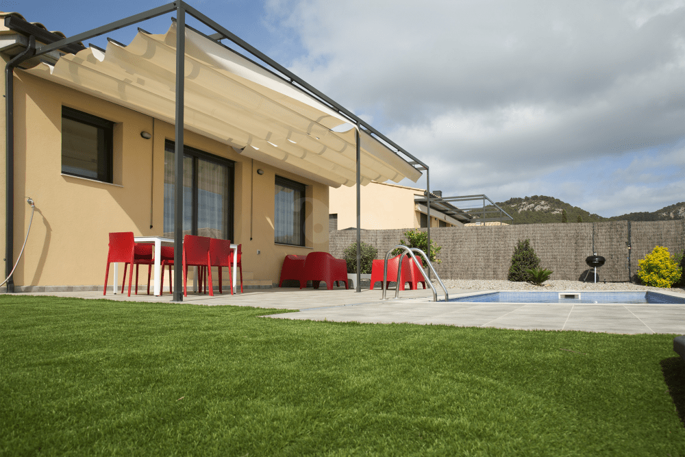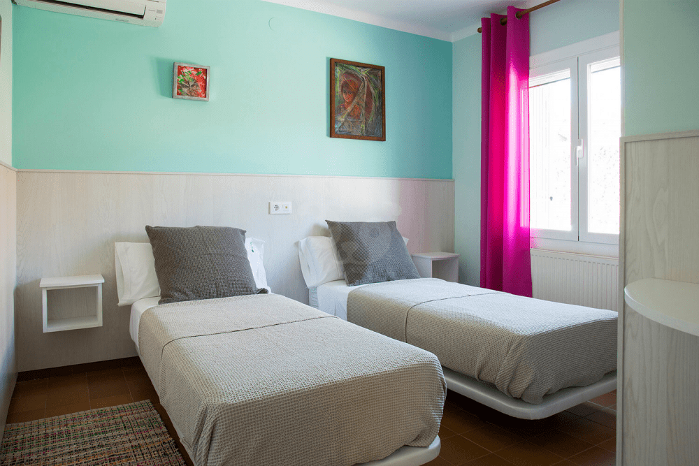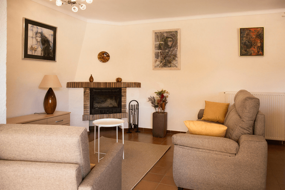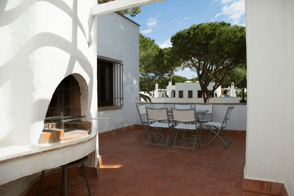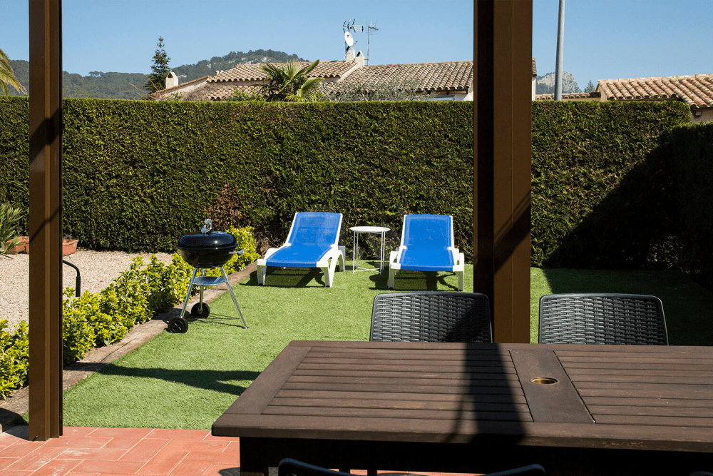 Casa Pinyera ofrece espacio para 6 personas en una casa adosada con 2 plantas. En la planta baja se ubica una habitación, un baño, salón con chimenea, comedor, cocina, terraza y jardín. En la primera planta encontrarás 2 habitaciones, un baño y una terraza tipo solárium con barbacoa.