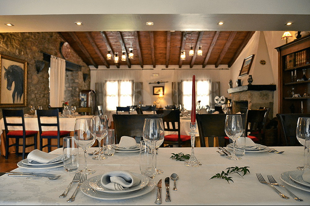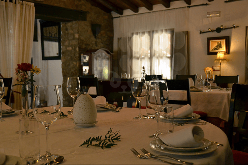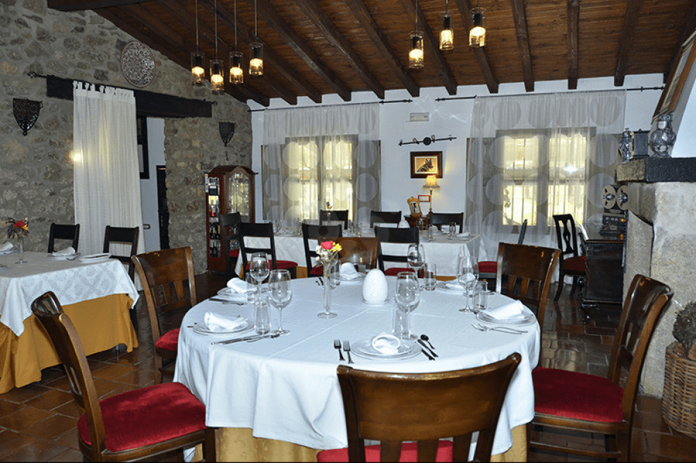 El interior destaca por su ambiente acogedor con techos de madera, paredes de piedra y grandes ventanales con vistas al jardín. Para comer en el restaurante es imprescindible reservar. Ideal para complementar tu estancia en la Finca Los Canchales.
