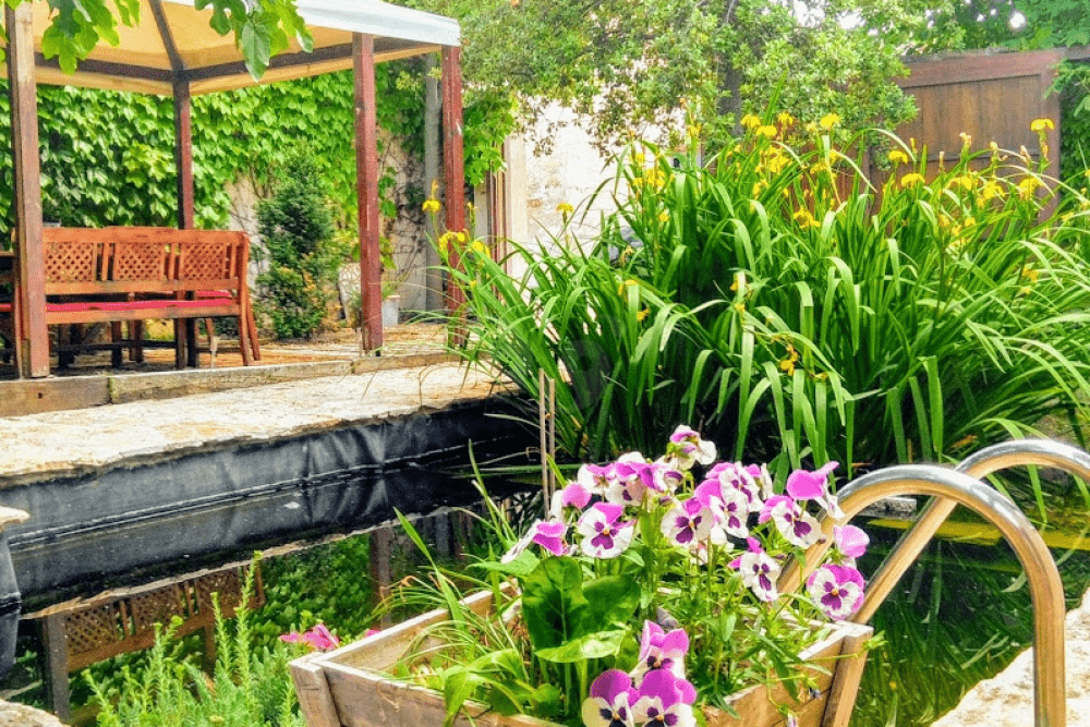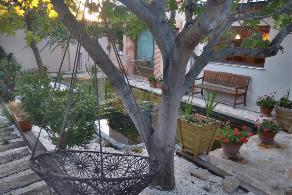 El exterior es un auténtico oasis de paz y tranquilidad con unas características que convierten a Viento de Ladera en un alojamiento diferente. En él encontrarás un estupendo porche con mobiliario de madera, una zona para realizar barbacoas, un espacio chill out, un columpio y una piscina de agua natural, todo ello lleno de plantas con vivos colores haciendo del lugar un rincón único.